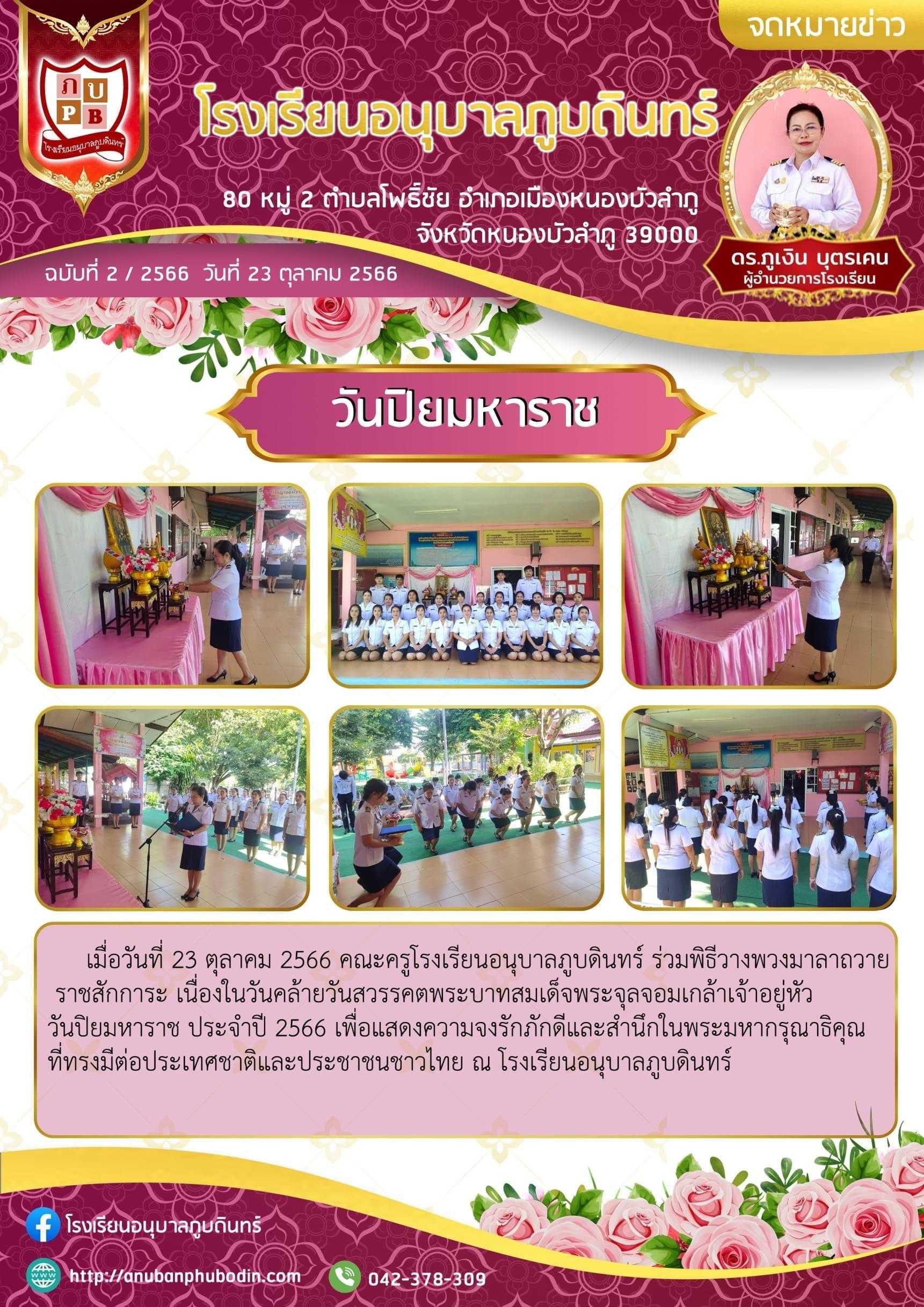 ยินดีต้อนรับสู่เว็บไซต์ โรงเรียนอนุบาลภูบดินทร์ ภายใต้เอกลักษณ์ที่ว่า "ยิ้ม ไหว้ ทักทาย บริการ" ปรัชญา "พื้นฐานการศึกษา พัฒนาคุณภาพชีวิต"